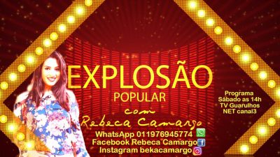 O Programa Explosão Popular exibido todos os sábados às 22h pela TV Guarulhos, sobe o comando da apresentadora Rebeca Camargo.